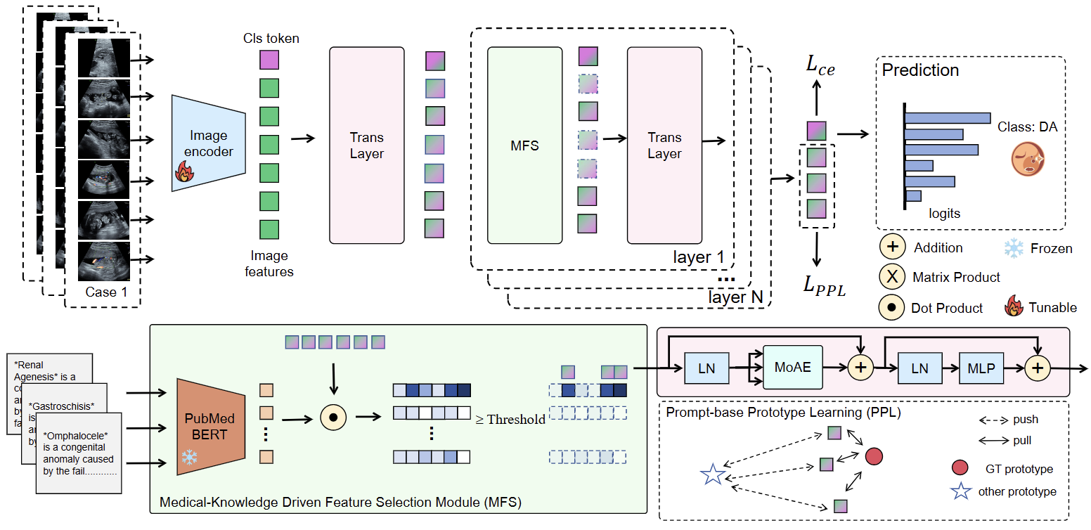 Medical-Knowledge Driven Multiple Instance Learning for Classifying Severe Abdominal Anomalies on Prenatal Ultrasound Huanwen Liang, Jingxian Xu, Yuanji Zhang, Yuhao Huang, Yuhan Zhang, Xin Yang, Ran Li, Xuedong Deng, Yanjun Liu, Guowei Tao, Yun Wu, Sheng Zhao, Xinru Gao, and Dong Ni MICCAI, 2025. [paper] |