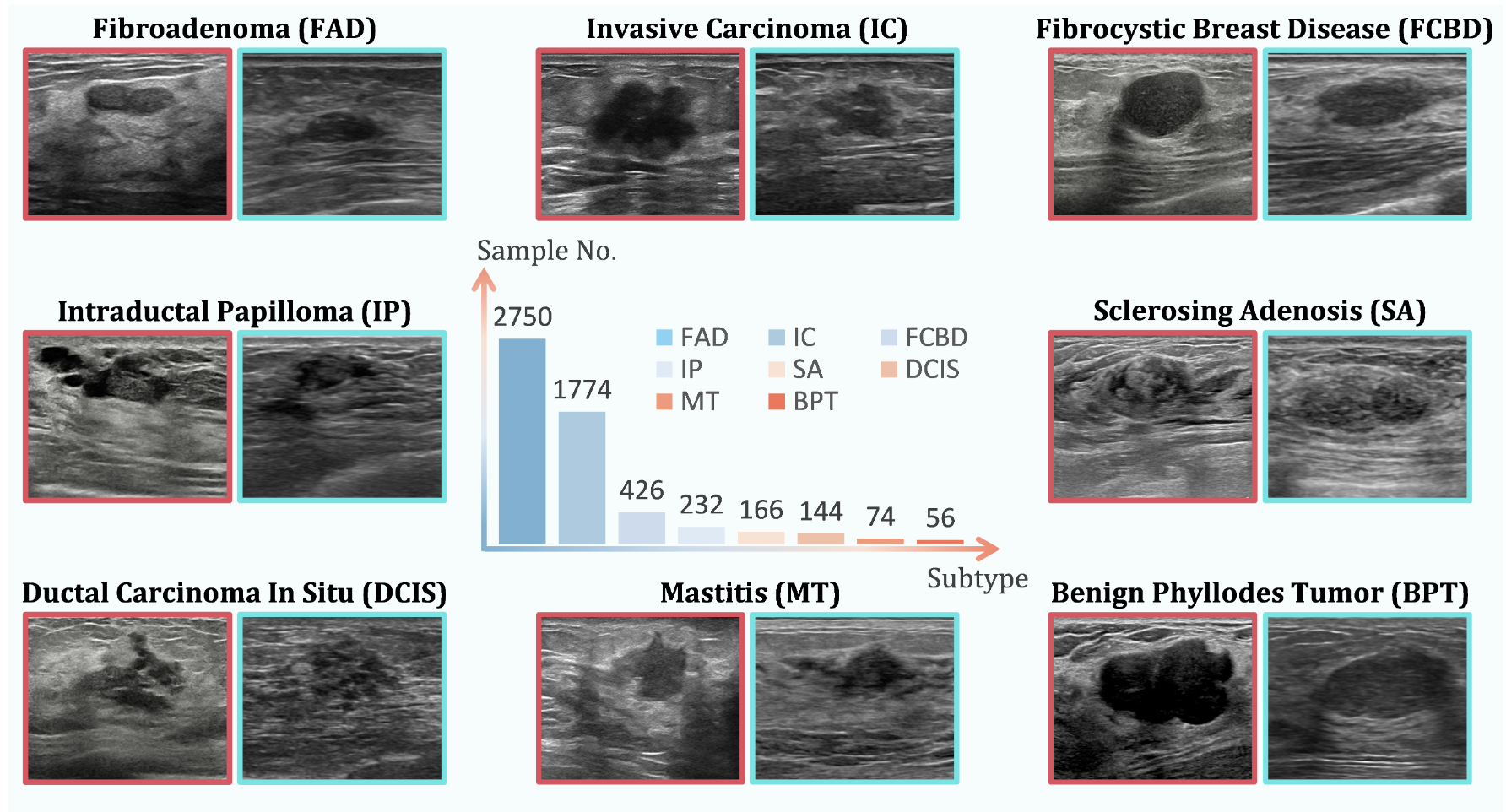 Subtyping Breast Lesions via Generative Augmentation based Long-tailed Recognition in Ultrasound Shijing Chen*, Xinrui Zhou*, Yuhao Wang, Yuhao Huang, Ao Chang, Dong Ni, and Ruobing Huang MICCAI, 2025. [paper] |